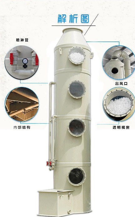 噴淋洗滌塔是廢氣處理工程中常用的凈化設(shè)備。該凈化塔有“立式”及“臥式”兩種產(chǎn)品。本產(chǎn)品廣泛用于化工、電鍍、五金、鋁材、電器、醫(yī)藥、印染、等機(jī)械加工行業(yè)中產(chǎn)生的氮氧化物、氯化氫氣、氟化氫、氨氣、硫酸霧、鉻酸霧、氰氫酸氣體等水溶性有毒有害氣體的凈化;亦可適用于氨、硫化氫、酚光氣、甲醛、甲醇、胺類等惡臭物質(zhì)的除臭處理。